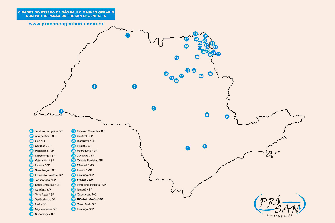 Desde 1981 atuando com profissionalismo, agilidade e responsabilidade na elaboração e aprovação de projetos de infraestrutura urbana, tais como: Sistemas de Abastecimento de Água; Sistemas de Coleta, Afastamento e Tratamento de Esgoto; Sistemas de Drenagem Superficial; Estudos Hidrológicos e Hidráulicos em geral e Outorgas. Ampla experiência em aprovação junto aos órgãos SABESP, COPASA, CETESB, DAEE, Prefeituras Municipais e outros.